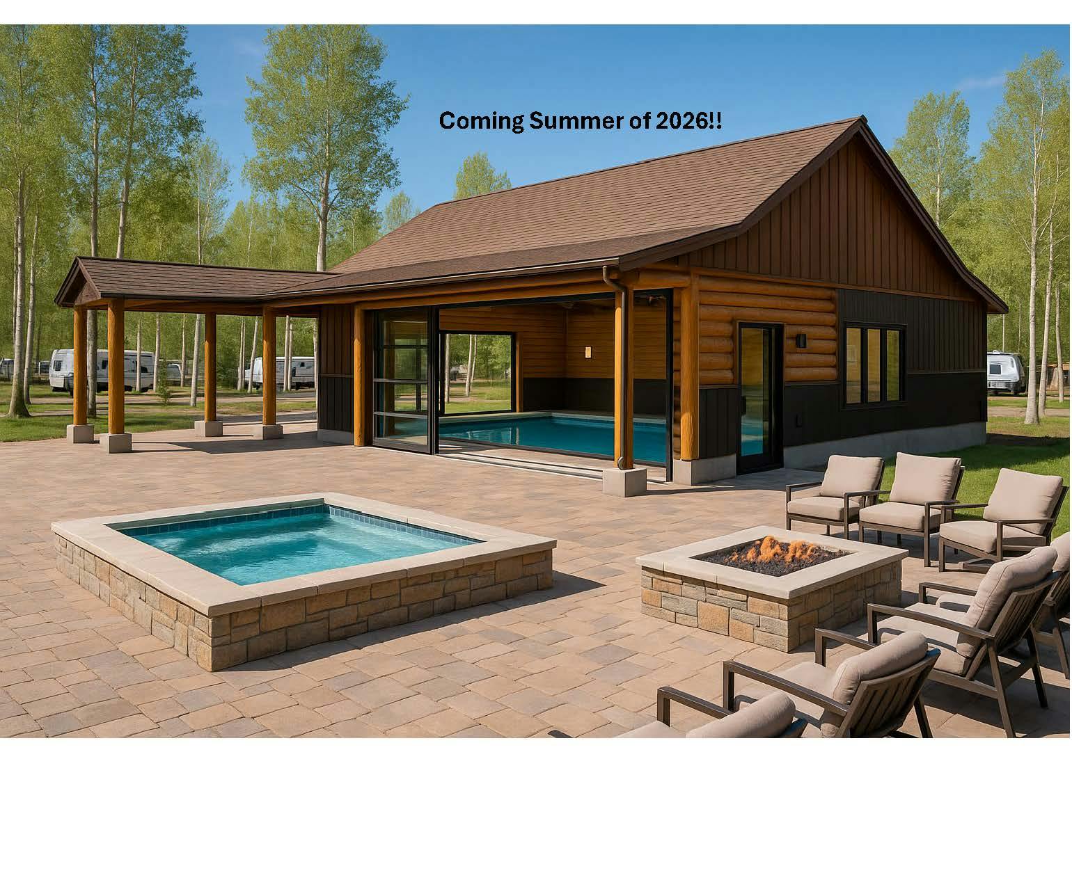 New indoor heated pool, hot tub, lounge area, and new gazebo hot tub all coming summer of 2026!